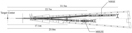 Two NSE spectrometers with resonance neutron spin flippers, that is, a NRSE instrument and a MIEZE instrument, have been installed by Kyoto University and KEK jointly at BL06 for viewing the coupled moderator. NSE is an essential spectroscopic technique, which has achieved the highest energy resolution with neutrons as the probe [65]. NSE with RSFs is a rather new approach [66]. In addition, the combination of NSE and a pulsed neutron source makes possible to scan a wide spatiotemporal space very efficiently. The beamline has been named VIN ROSE (VIllage of Neutron ResOnance Spin Echo spectrometers), and it will spawn many new field of spectroscopic methods [20]. Figure 10 shows a schematic top view of BL06. The main specifications of VIN ROSE are listed in Table 7.