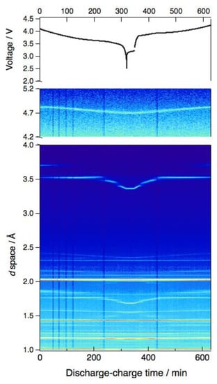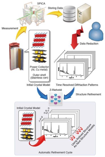 - Taminato, S.; Yonemura, M.; Shiotani, S.; Kamiyama, T.; Torii, S.; Nagao, M.; Ishikawa, Y.; Mori, K.; Fukunaga, T.; Onodera, Y.; et al. Real-time observations of lithium battery reactions—Operando neutron diffraction analysis during practical operation. Sci. Rep. 2016, 6, 28843. [Google Scholar] [CrossRef] [PubMed]
