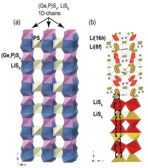 - Kanno, R.; Murayama, M. Lithium Ionic Conductor Thio-LISICON: The Li2S-GeS2-P2S5 System. J. Electrochem. Soc. 2001, 148, A742–A746. [Google Scholar] [CrossRef]