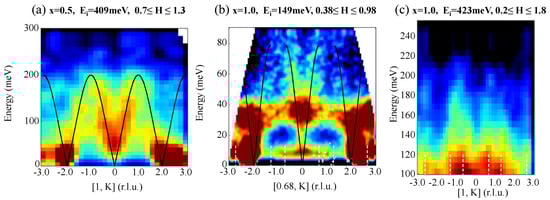 - Wang, M.; Zhang, C.; Lu, X.; Tan, G.; Luo, H.; Song, Y.; Wang, M.; Zhang, X.; Goremychkin, E.A.; Perring, T.G.; et al. Doping dependence of spin excitations and its correlations with high-temperature superconductivity in iron pnictides. Nat. Commun. 2013, 4, 2874. [Google Scholar] [CrossRef] [PubMed]