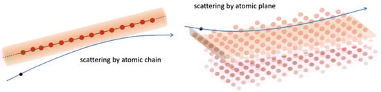 Obviously, similar considerations are valid when the crystal is oriented along one of the crystallographic planes, which is also composed of the crystal atoms (Figure 1, right). Averaging the atomic potential over the plane atoms determines the corresponding continuous planar potential
