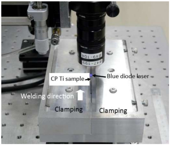 The blue diode laser (BDL) is one of the laser technologies that is commonly used in applications such as lights for projectors and general lighting. However, many more potential applications are possible in the near future if the laser’s power and brightness can be increased [1,2]. A new generation of blue diode laser (BDL) has recently been developed at the Joining and Welding Research Institute (JWRI), Osaka University, in collaboration with Shimadzu Corporation, Japan. The welding machine has a power of up to 100 W and an energy density of 1.3 × 106 W/cm2 at the end of the output fiber. This new device uses a GaN-based diode [1] and is expected to be used as a light source for various applications, including welding of the so-called difficult-to-weld metals such as gold, copper, and other reflective metals as well as in 3D printing of such metals because blue light can be efficiently absorbed by these metals [1,2]. Given its very small spot beam size, BDL technology can also be applied extensively to thin foil manufacturing, such as in cutting and/or welding processes. Joining (welding) of thin foils has always been required, for example, in battery cell applications [3]. In addition, with a very small spot size, the heat distortion is also minimized, which means post-weld heat treatment to remove residual stresses may not be required [1]. Furthermore, it is also expected to contribute to reducing the processing time and electrical power consumption in these applications, which is not possible with conventional modules. More details about the BDL machine developed at the JWRI can be found in the paper by Tojo et al. [1].
