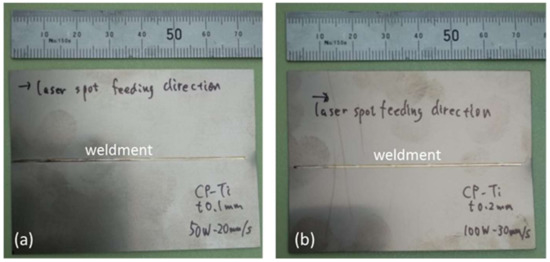 Welded CP Ti foils: (a) 100 µm thick and (b) 200 µm thick.