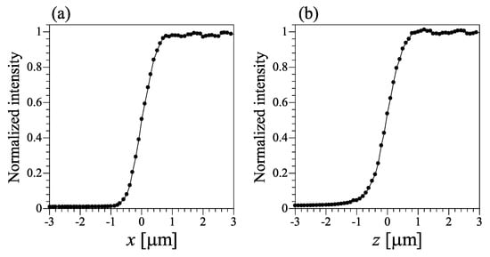 (a) Horizontal and (b) vertical knife-edge scan profiles of a focused X-ray beam with 50 keV of photon energy.