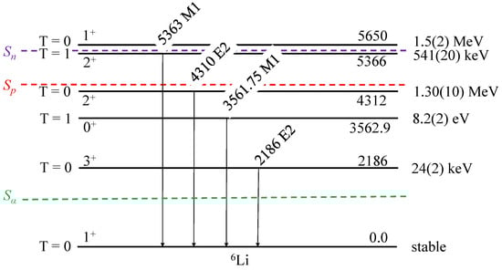 - Eigenbrod, F. Untersuchung der vier ersten angeregten Zustände des 6Li-Kernes durch Elektronenstreuung. Z. Phys. 1969, 228, 337–352. [Google Scholar] [CrossRef]