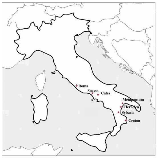 These events established a new political equilibrium in Magna Graecia, initially in line with the needs and interests of the Achaean communities, especially of Croton, but a few years later, this equilibrium was broken, and new alliances were born. On the one hand, Thurium broke the agreement with Croton and reached a new agreement with Tarentum; on the other hand, the heirs of the ancient Achaean communities of Croton, Caulonia, and Sybaris (Sybaris on Traeis) formed a political and military union, the Achaean union, around 430 BC, with the aim of defending their own interests [42,43].