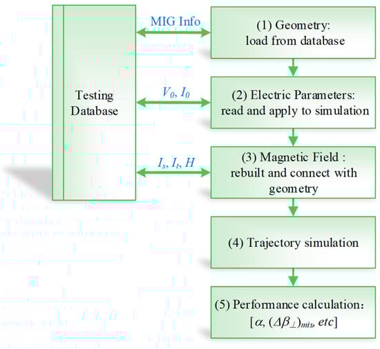 The detailed online simulation and evaluation process of the beam status is shown in Figure 4. First, the MIG geometry is updated based on the fabrication error of each part and axial deviation in the assembly. Then, it is transferred to the simulation input files.