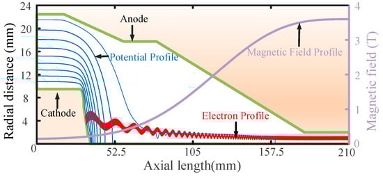 - Barnett, L.R.; Luhmann, N.C.; Chiu, C.C.; Chu, K.R. Relativistic performance analysis of a high current density magnetron injection gun. Phys. Plasmas 2009, 16, 093111. [Google Scholar] [CrossRef]