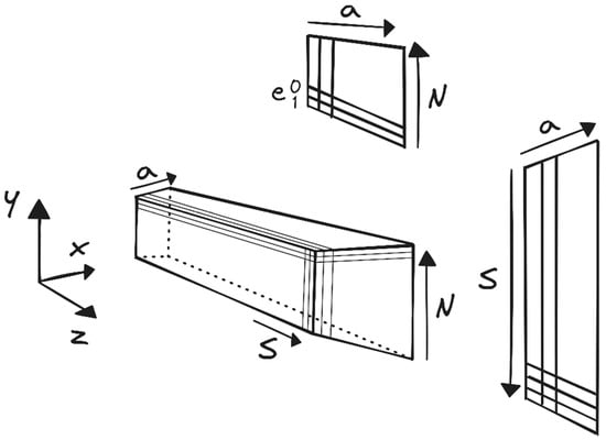 A simplified sketch of a single detector unit is provided in Figure 1. The detector’s geometrical details are represented using the following coordinate systems: , , or the unique voxel identifier (voxel ID). This ID combines four building components: ‘a’ for the anode wire, ‘S’ for the cathode stripe, ‘N’ for the module number, and ‘e’ for the upper and lower part of each module. A detailed description of the internal detector design and of the detection process, just briefly described in the following, may be found in [9].
