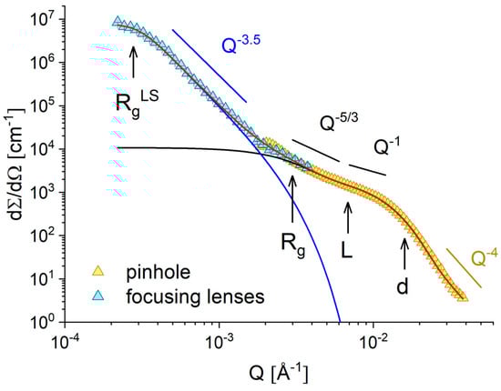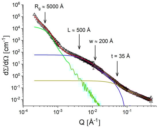 - Hammouda, B. Analysis of the Beaucage Model. J. Appl. Cryst. 2010, 43, 1474–1478. [Google Scholar] [CrossRef]