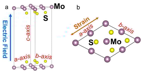 2 as the band gap directly influences carrier excitation, mobility, and the overall thermoelectric transport mechanisms. These findings complement the strain engineering studies presented earlier, highlighting that electric field manipulation along the c-axis is another effective approach to tailor the electronic structure of MoS