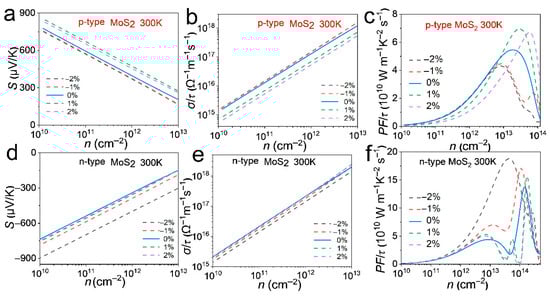 2. By comparing these thermoelectric parameters, it can be seen that strain, temperature, pressure, electric field, and other factors all have varying degrees of influence on the thermoelectric properties of MoS