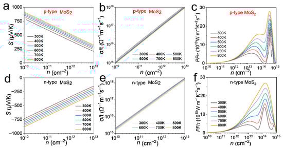 Figure 12 explores the electric field-modulated thermoelectric properties as a function of the carrier concentration n of MoS