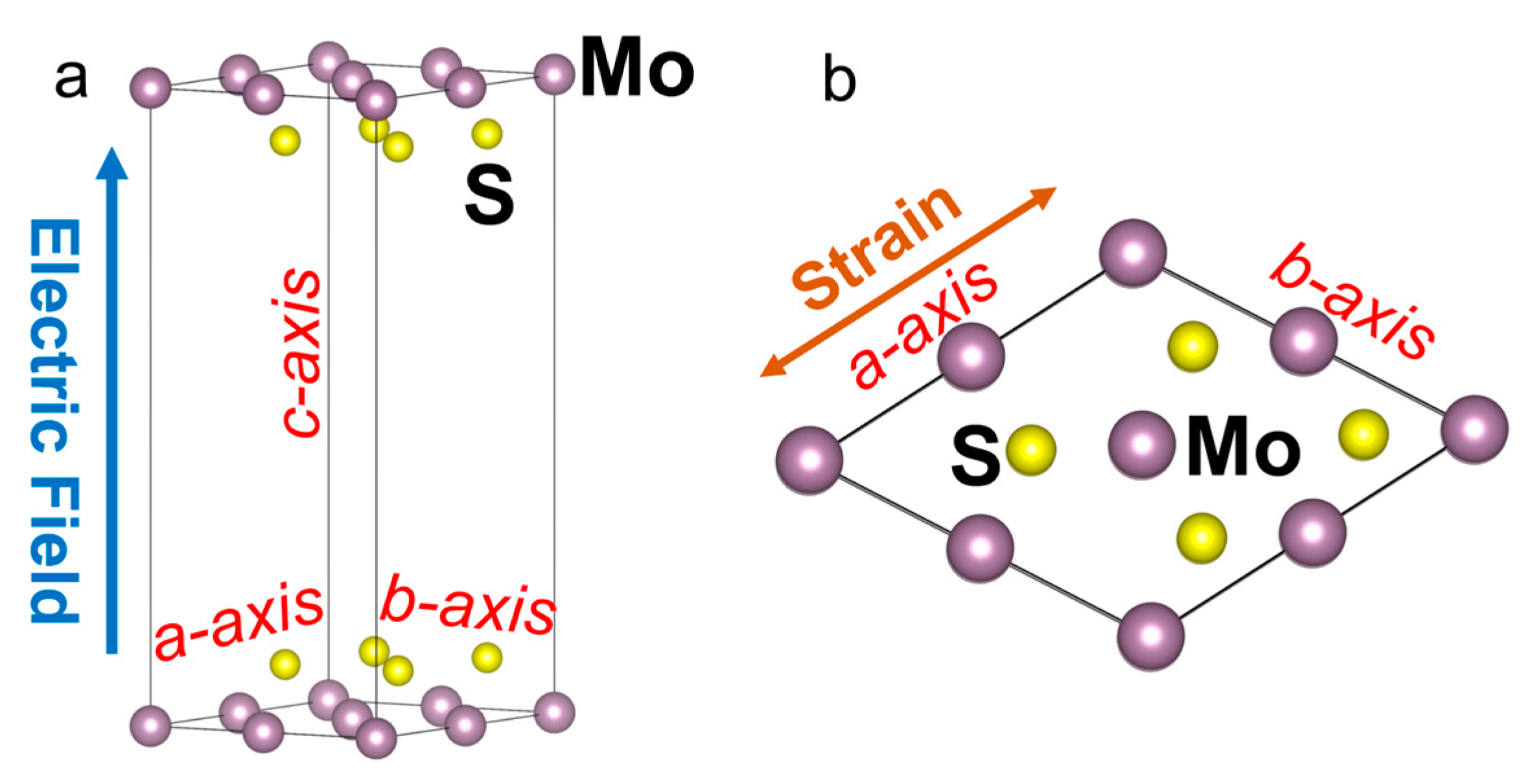 2 lattice. Such changes in the band structure under electric fields play a crucial role in tuning the electronic and thermoelectric properties of MoS