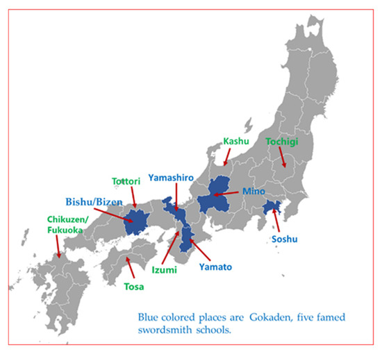 Locations of Gokaden and of the production of the swords discussed here.