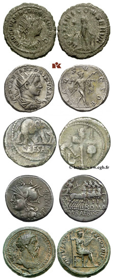 - Obverse motif, including the type of depiction (head or bust, conjunctional or facing, etc.), head adornments (bare, laureate, diademed, radiate, helmet, etc.), clothing (draperies, breastplates, robes, armour, etc.), and miscellaneous accessories (spears, shields, globes, etc.),