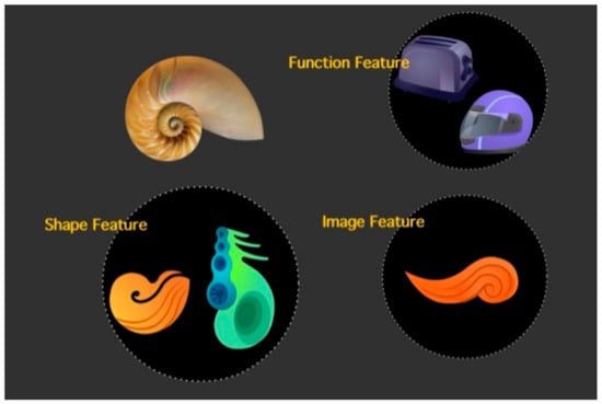Meyer et al. [] defines “Levels of Stylization” as the representation of useful and essential visual elements of an object in terms of its identification. Additionally, he exemplified the five levels of stylization by an “object” apple perceptual content of an object or concept. It then concludes that others are styled by shape feature, image feature, or their combinations. Using the nautilus as an example, stylization levels based on visual characteristics are illustrated in Figure 1. In each of these visual characteristics, any “object” can be styled from an “actual thing” to a “useful icon”: From shape, picture, or functionality of representation icon, either abstract or arbitrary [,].