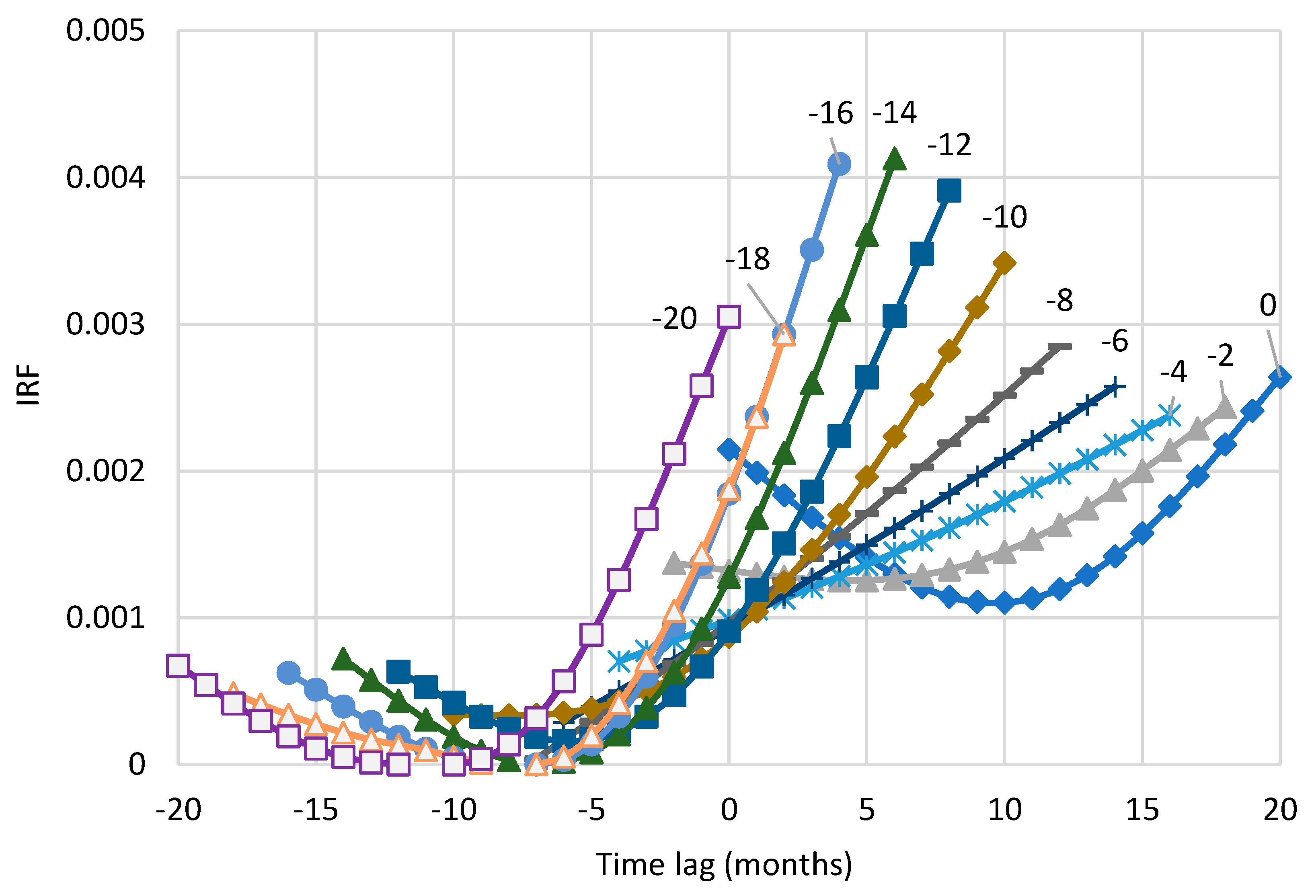 - All characteristic time lags () are positive in the direction (ranging from about 7 to about 10 months), and negative in the direction .