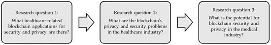 This review conducts research on the security and privacy of blockchain in healthcare from 2017 to 2022 according to specific research questions (Figure 1). Through a critical evaluation of the existing literature, it examines the current state of affairs, focusing on practical applications and challenges. By providing a critical assessment, this review offers a valuable insight into potential future research directions and advancements.