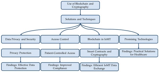 The aforementioned studies demonstrate the promise of blockchain and cryptography technologies for safe, private, and effective access control and healthcare data exchange. The suggested methods are appropriate for IoMT applications because they have competitive computation and communication costs while meeting anticipated security requirements. The outcomes show that these technologies are practical and efficient in resolving long-standing privacy and security problems in the healthcare sector. Figure 4 shows the papers’ implications for healthcare privacy and security.