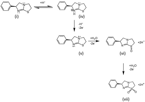 - Holbrook, A.; Scales, B. Polarographic determination of tetramisole hydrochloride in extracts of animal tissue. Anal. Biochem. 1967, 18, 46–53. [Google Scholar] [CrossRef]