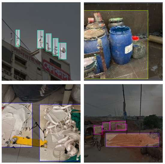 Dataset Classes: Visual pollutants encompass any objects that have the potential to affect an individual’s visual perception adversely. These pollutants can be attributed to various factors, including excessive billboards and signage, hanging cables, roadside litter, communication infrastructure such as grid and cellphone towers, and several other sources. In this article, we prioritize the analysis of common visual pollutants frequently observed on the streets of Dhaka, Bangladesh, with particular attention paid to the presence of urban elements and textile factories. Specifically, our study focuses on the visual pollutants listed in Table 2, which includes billboards, street litter, construction materials, bricks, wires, towers, industrial clothes dump, industrial textile billboards, and industrial textile dye.
