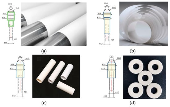 Alternative insulation solutions by Al2O3: (a) coating; (b) flexible tape; (c) tubes; (d) rings.