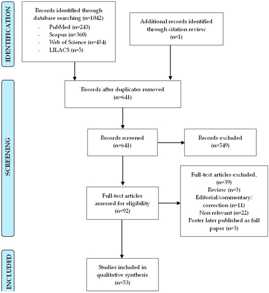 Our search yielded 1042 references and the included studies’ bibliography review identified 1 additional study. In the end, 42 studies were included in the final selection. Eleven poster abstracts were also reviewed and are discussed separately.