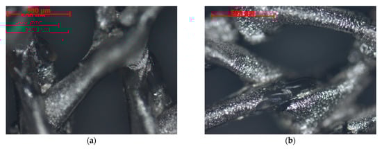 (a,b) Microstructure of Ag-coated mesh with overheating. The photographs were obtained with an Axiocam MRc5 camera (Carl Zeiss AG, Jena, Germany).