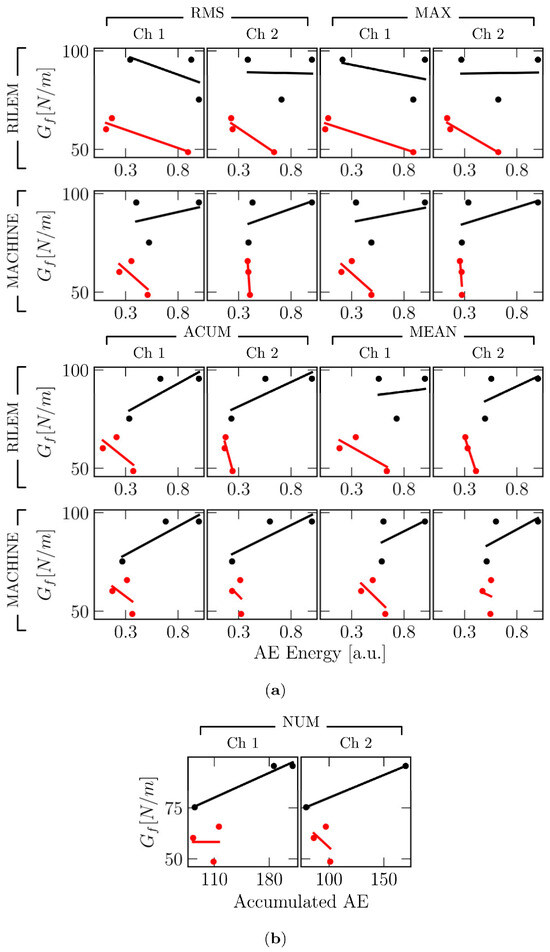 3.2. Combined Analysis of Fracture Energy and AE Energy