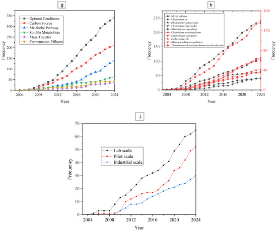 Normalizing the number of scientific productions per million inhabitants, Thailand, Malaysia, and South Korea stand out. This contribution can be ascribed to academic and governmental support, the availability of appropriate substrates, and rapid technological advancements [61]. As described in Table 1, Thailand and Malaysia have exhibited a considerable increase in publications related to biohydrogen production. Both countries have set ambitious renewable energy targets, with Malaysia’s National Energy Transition Roadmap aiming for 70% renewable energy by 2050 and Thailand’s National Energy Plan 2023 seeking a 50% renewable energy ratio in new electricity generation; additionally, initiatives such as Malaysia’s National Hydrogen Economy and Technology Roadmap and collaborative projects, such as Malaysia’s H2biscus and Thailand’s partnerships with international organizations [62], further demonstrate the commitment to advancing biohydrogen research. This upward trend reflects a boosted awareness of the significance of sustainable energy resources, driven by environmental obligations and governmental incentives to foster research in this domain.