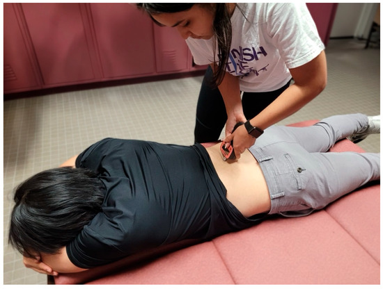 Procedures for palpating the center of the muscle belly for accurate placement of the sensor tip are drawn from other TMG protocols for consistent placement of the sensor tip on each of the participants. Participants laid prone on a massage table during palpation of muscle groups. Measurements were conducted in a private room, and draping was used to minimize exposure of muscle groups.