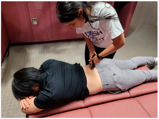 The kettlebell swing represents a novel training approach integrating ballistic movements with an eccentric loading phase of hip hinging, succeeded by an explosive concentric phase to drive the weight forward [5]. While existing studies demonstrate the kettlebell swing’s capacity to enhance muscular properties over extended durations, evidenced by its efficacy in improving explosive power in athletes compared to traditional jump squat training [13], there is a shortage of evidence regarding its acute impact on the contractility of specific muscle groups, particularly those in the lumbosacral and pelvic-hip regions. Exploring changes in muscle contractile parameters, such as muscle displacement (Dm), which measures a muscle group’s displacement from its original position following an electrical stimulus [14], remains uncharted territory within the context of a high-intensity kettlebell swing protocol. Despite indications that the kettlebell swing activates muscles in the low back and gluteus maximus regions [15,16], along with other hip extensor musculature like the biceps femoris, as evidenced by EMG studies [17], the potential for the kettlebell swing to influence these contractile properties post-fatiguing acute exercise warrants investigation. Moreover, while one study has examined muscle sensitivity in the lumbosacral region [5], revealing an increase in pressure pain threshold following an acute bout of a high-intensity kettlebell swing protocol, further research is essential to fully comprehend how this exercise modality impacts muscular contractility and sensitivity in the lumbosacral region.