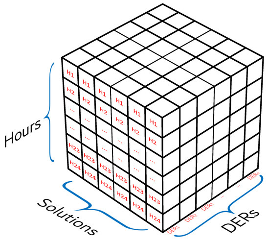 | Indices used in the 3D coding structure for dispatch: hours, solutions, DER layers |