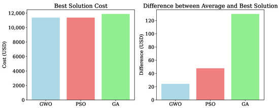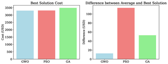 - Implementation of a rigorous statistical validation (100 independent runs) comparing GWO with PSO and GA, providing a benchmark for metaheuristic performance in DER management.