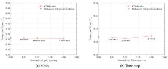 - Meana-Fernández, A.; Fernández Oro, J.M.; Argüelles Díaz, K.M.; Galdo-Vega, M.; Velarde-Suárez, S. Application of Richardson extrapolation method to the CFD simulation of vertical-axis wind turbines and analysis of the flow field. Eng. Appl. Comput. Fluid Mech. 2019, 13, 359–376. [Google Scholar] [CrossRef]