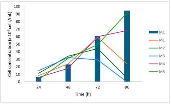 Cell permeability was determined by measuring the amount of lactate dehydrogenase (LDH) released in the cell suspension after cells MRC-5, HeLa, Caco-2 and SW-620 had been cultured for 72 h in the presence of a selected medium. The cells were plated at a concentration of 2 × 104 cells/mL in 96-well microtitre plates. The LDH content in the cell supernatant was analysed using the Cytotoxicity Detection Kit (LDH), version 10 (Roche, Basel, Switzerland), according to the manufacturer’s instructions. Absorbance was measured at 490 nm using a Tecan Spark multimode plate reader (Tecan, Männedorf, Switzerland).