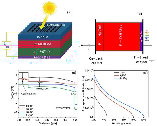 - Srinivasan, D.; Chettiar, A.-D.R.; Marasamy, L. Engineering BaHfS3 with Zr alloying to improve solar cell performance: Insights from SCAPS-1D simulations. Mater. Sci. Eng. B 2025, 315, 118126. [Google Scholar] [CrossRef]