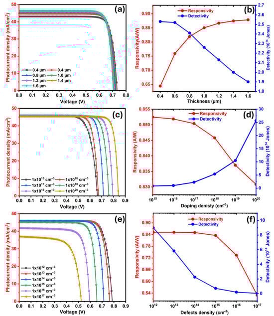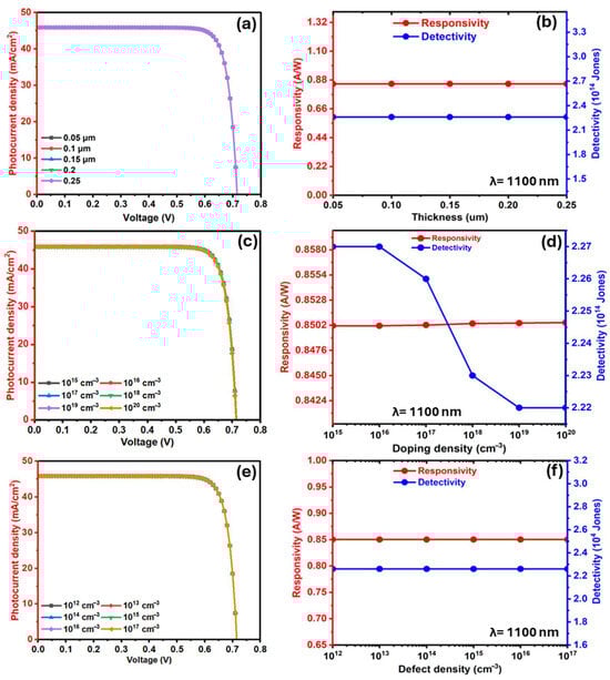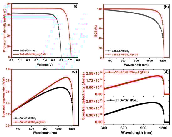 3.8. The Impact of the Series, Shunt Resistance, and Electron Affinity on the SrHfSe3 Photodetector Performance