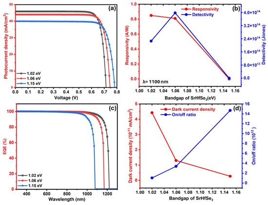 3.6. The Impact of the SrHfSe3 Bandgap Tuning on the Photodetector Performance