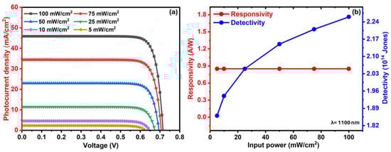 - Srivastava, R.; Verma, S.; Chaudhary, A.K.; Sahu, A. Enhanced red light detection in eco-friendly perovskite-based photodetector with improved low-light sensitivity. Solid State Commun. 2025, 403, 115983. [Google Scholar] [CrossRef]