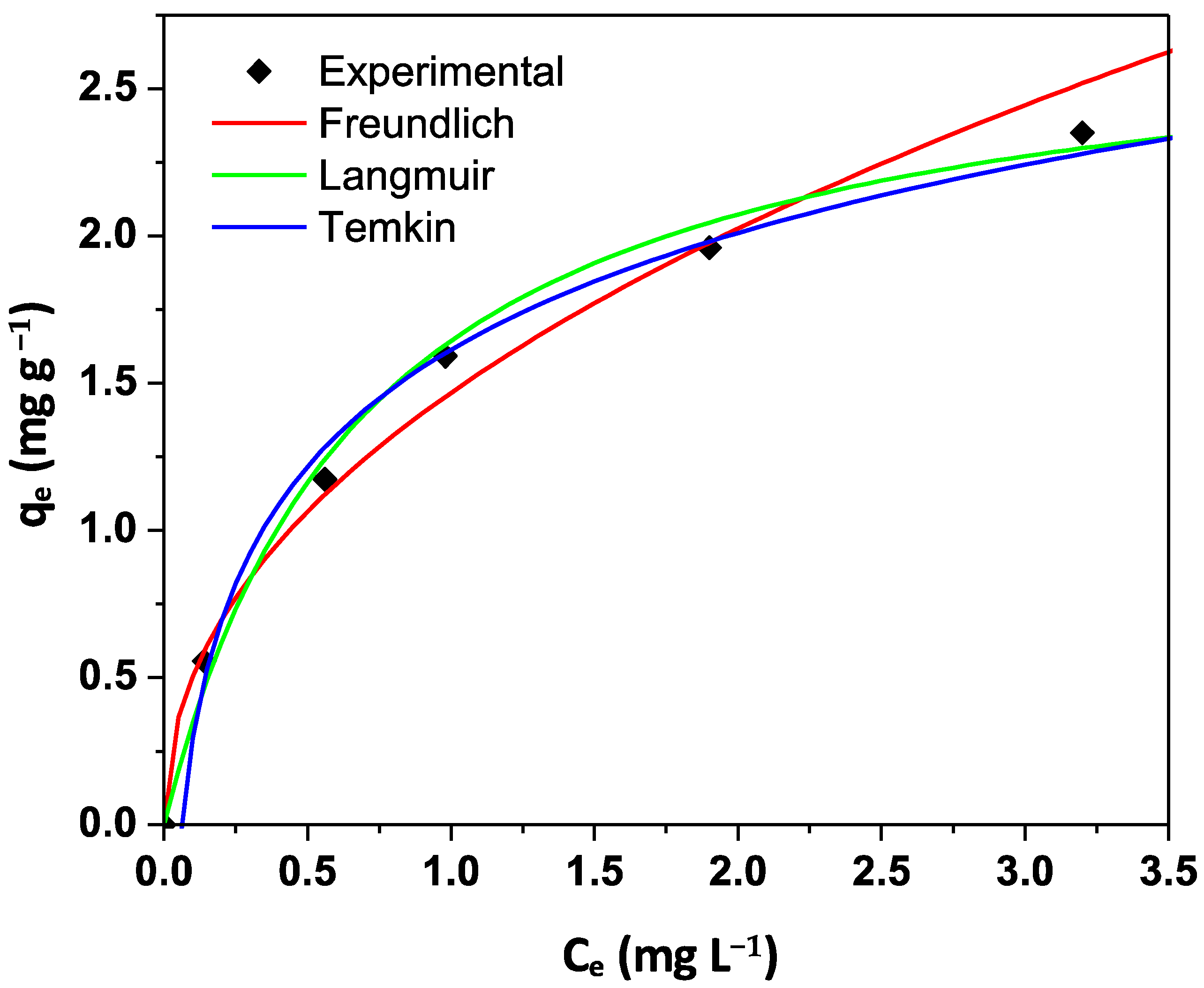 Langmuir | qmax (mg/g) 2.8 | KL (L·mg−1) 1.41 | R2 0.992 |