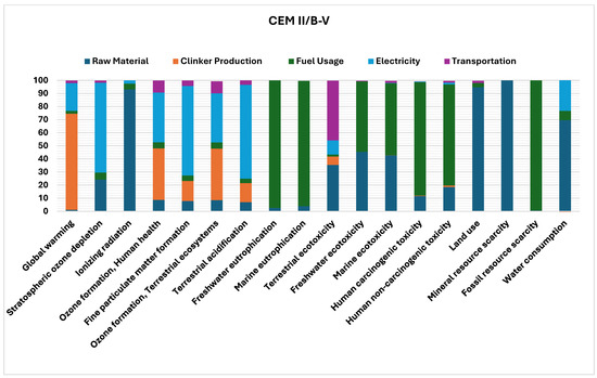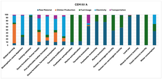 Cement types, such as Portland, Portland Composite, Composite and Pozzolanic (CEM I, CEM II, CEM III, CEM IV and CEM V), vary in composition, production processes and environmental impact, requiring comparative analysis. A critical evaluation of the impact of these cement types is necessary to promote sustainable construction practices that reduce climate change effects, conserve resources, and protect ecosystem integrity. The environmental impact of cement production has been investigated across its entire lifecycle, using life cycle assessment (LCA) from raw material extraction to disposal [29,30,31]. LCA quantifies metrics such as global warming potential, acidification, resource depletion, etc., providing insights into more sustainable production methods [17,32,33,34,35]. Several studies have investigated the complexities of cement production and its impacts on the environment and humans, a critical concern for policymakers across the public and private sectors [32,36,37]. LCA studies highlight the need to balance performance, cost, and sustainability, particularly in developing regions like South Africa, where infrastructure demands clash with decarbonization goals.