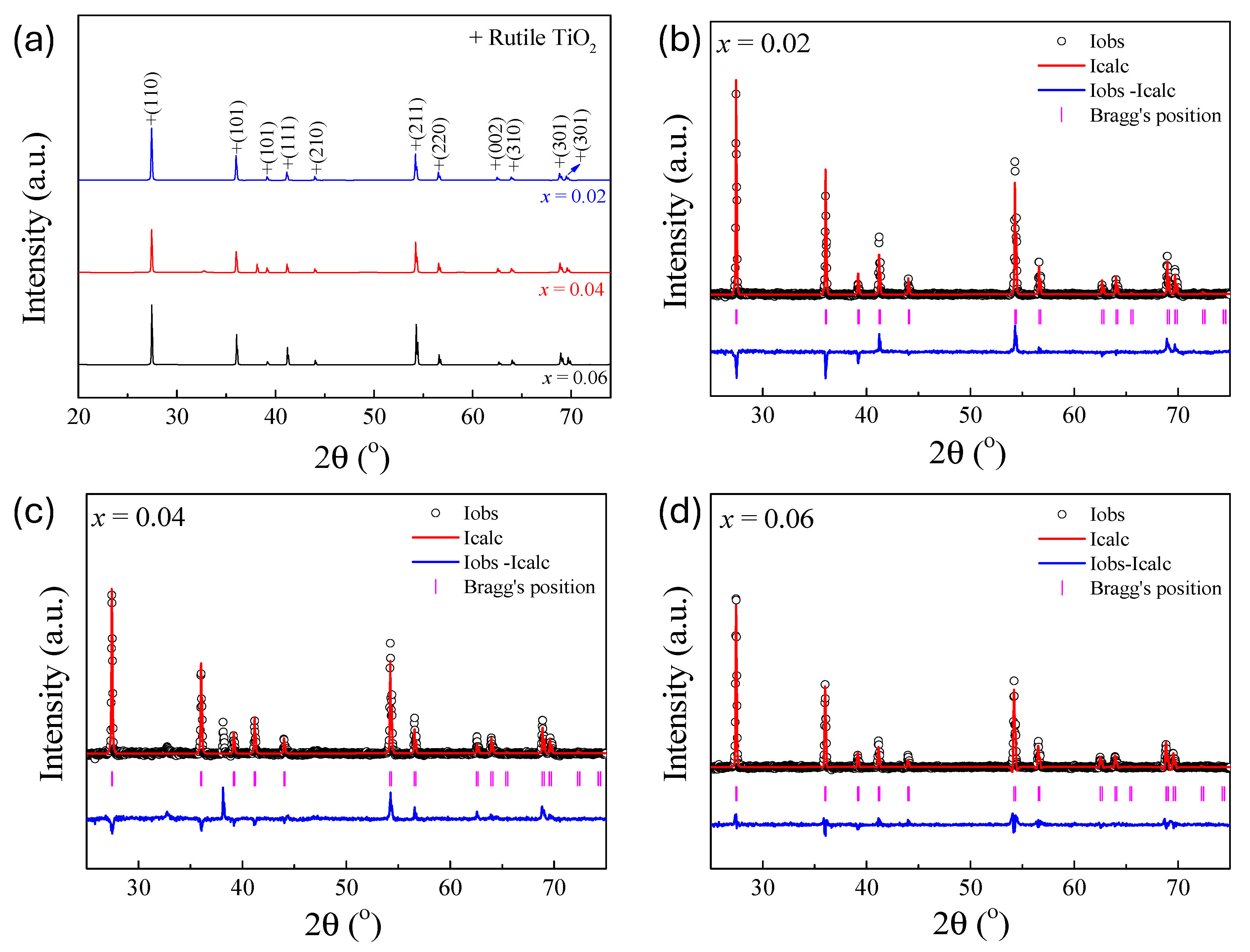 11], which is energy-intensive and environmentally taxing. Moreover, the stability of ε′ at different temperatures remains a challenge when sintering at a high temperature. Designing dense co-TO ceramic by sintering at a low temperature is important to save energy of fabrication and obtain excellent temperature stability in a high temperature range. At elevated sintering temperatures, a large concentration of oxygen vacancies is created in TiO