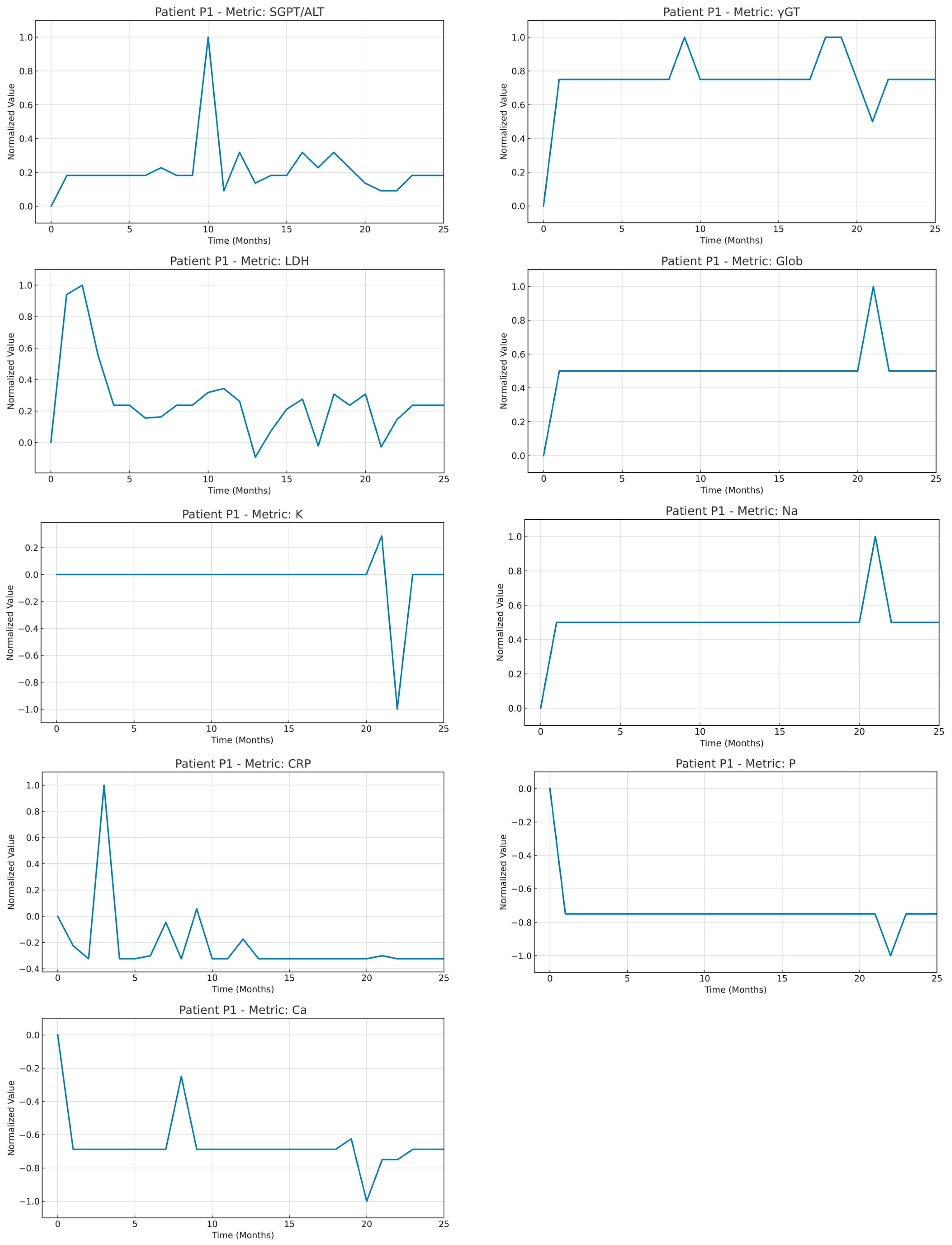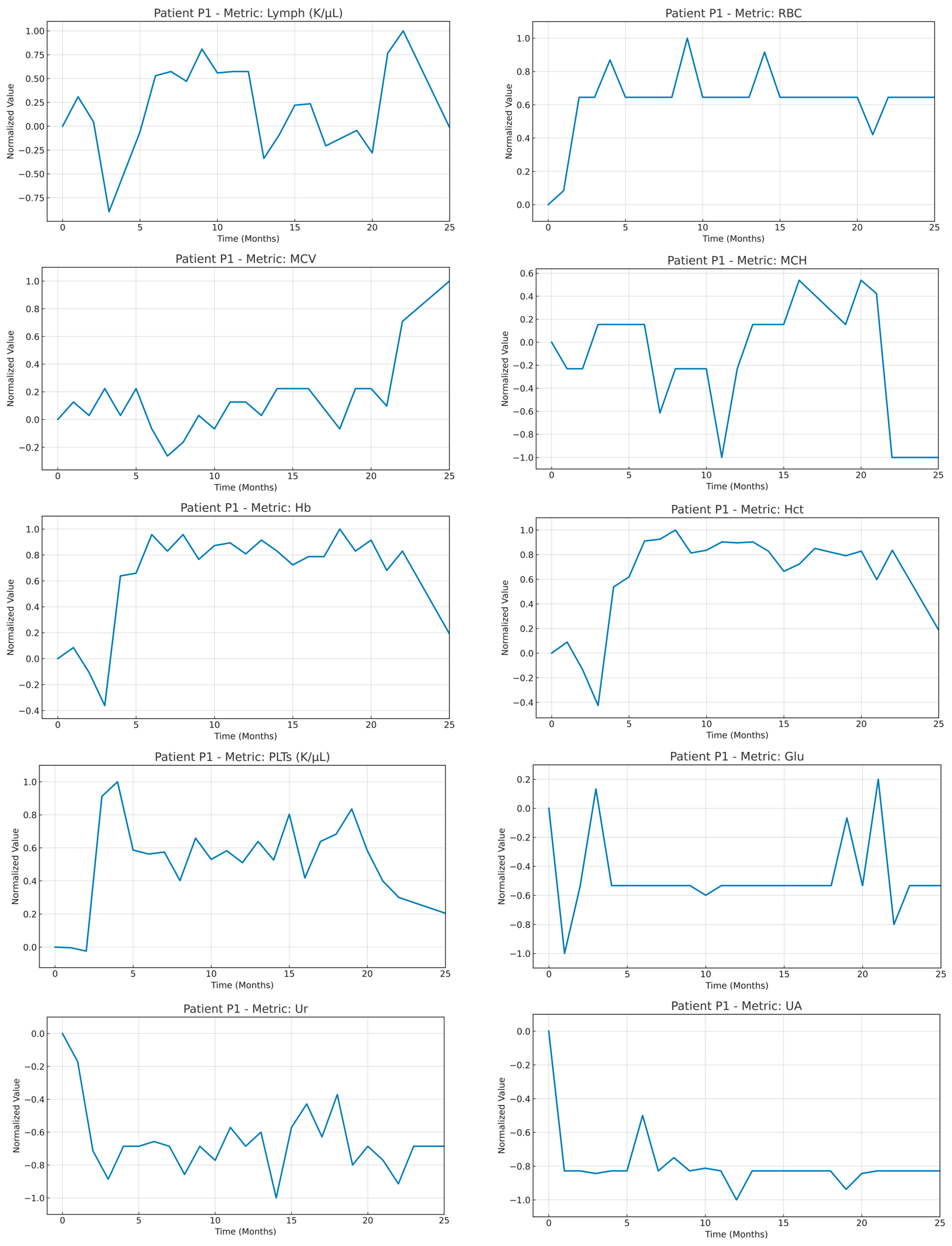 To address this, a custom normalization strategy was developed aiming to standardize each patient’s time series, remove baseline effects, emphasize the pattern of change during treatment, and allow trajectories from different patients to be directly comparable. The implemented normalization procedure works as follows.