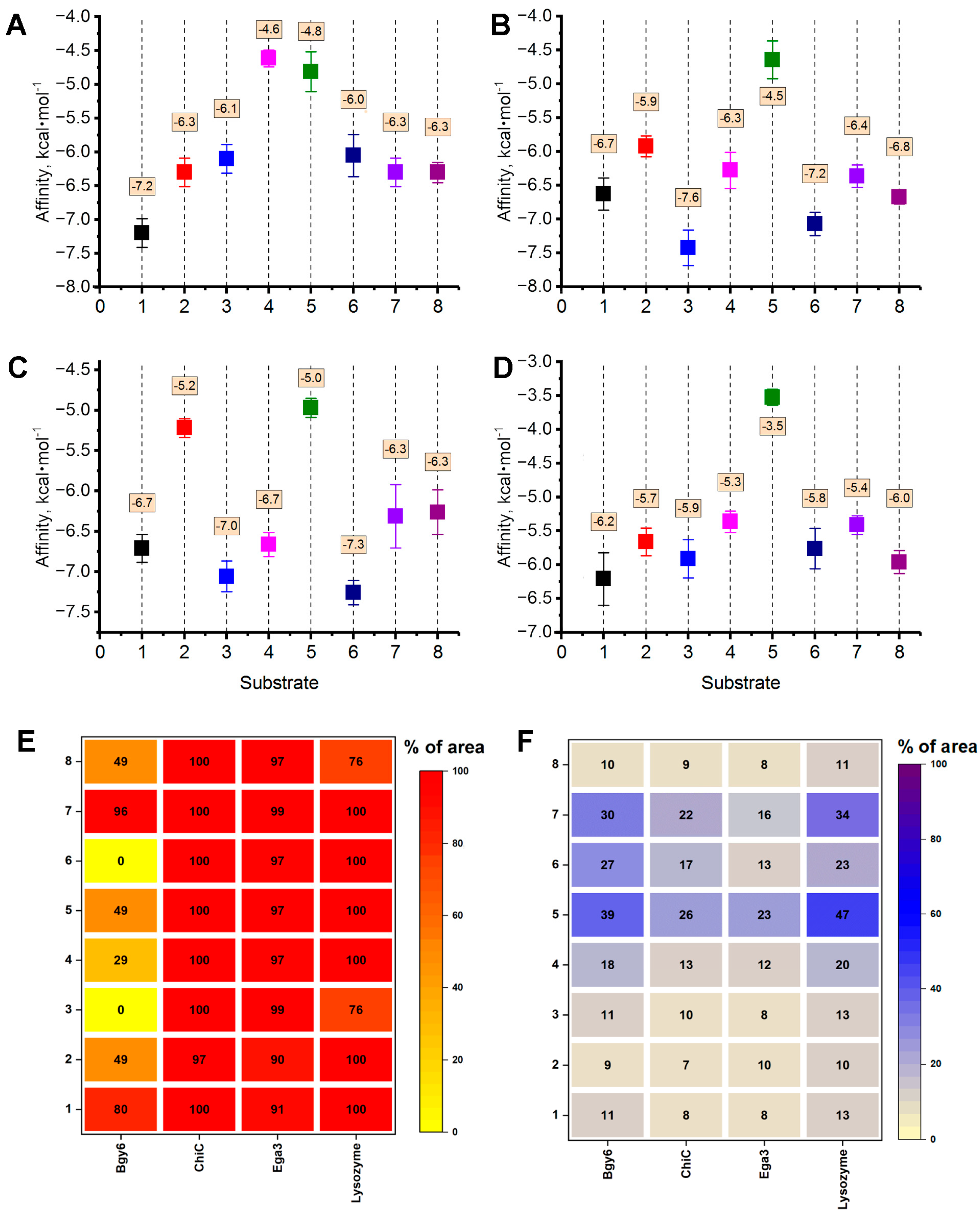 3.1. Computational Modeling of the Interactions of Hydrolytic Enzymes with the Fungal Cell Wall Components