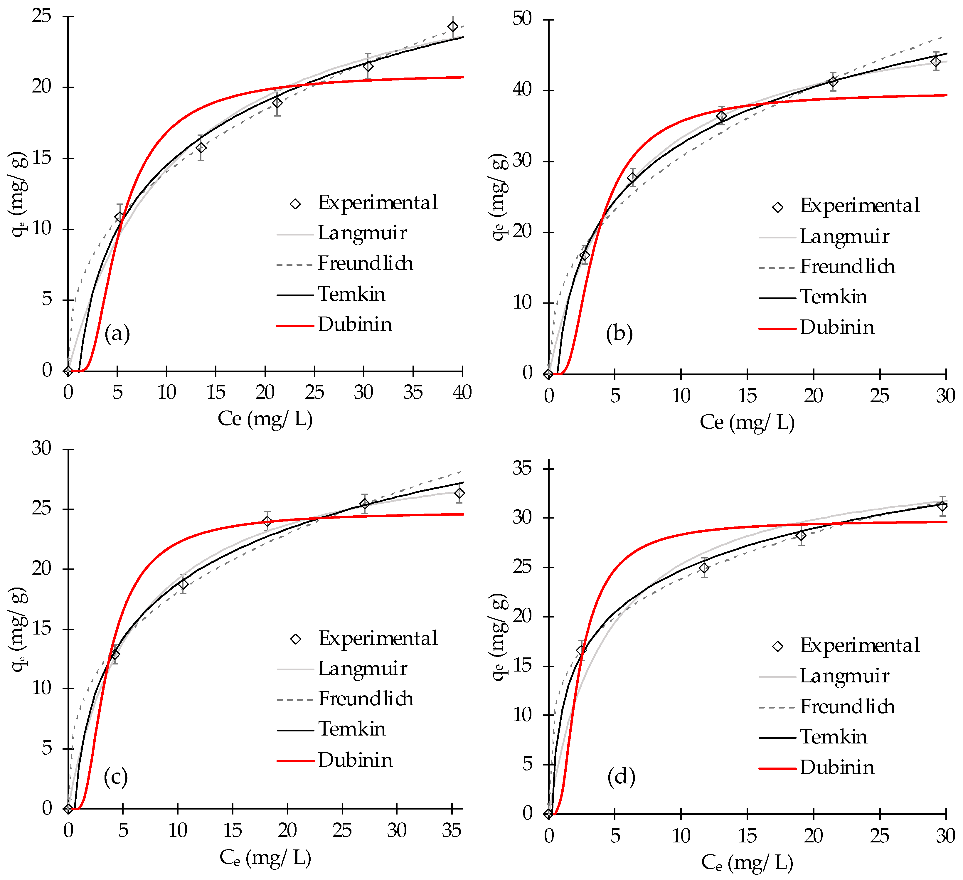 - Chen, X.; Yao, M. Modeling of Experimental Adsorption Isotherm Data. Information 2015, 6, 14–22. [Google Scholar] [CrossRef]
