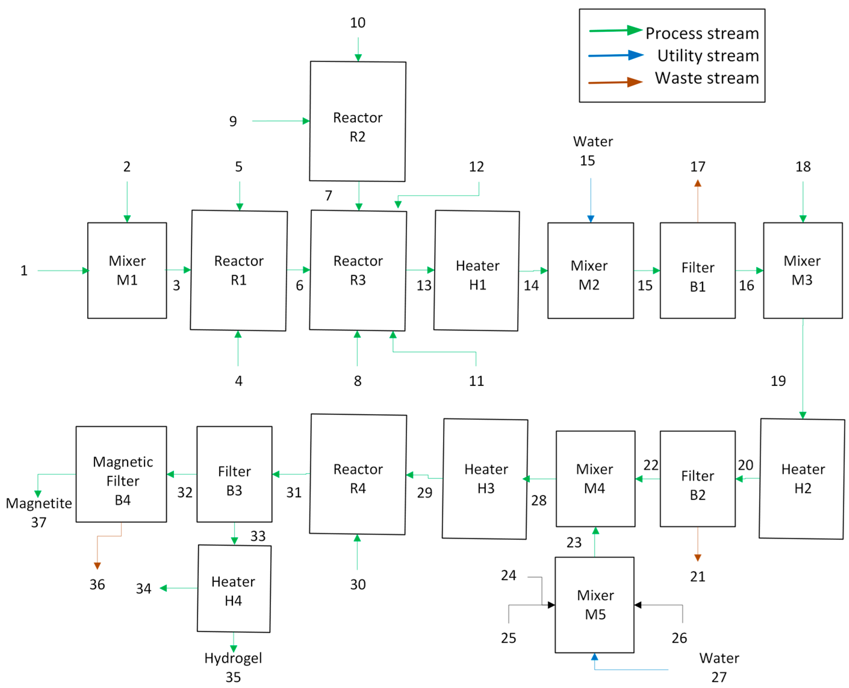| Main product flow (magnetized hydrogel, t/year) | 23,488 |