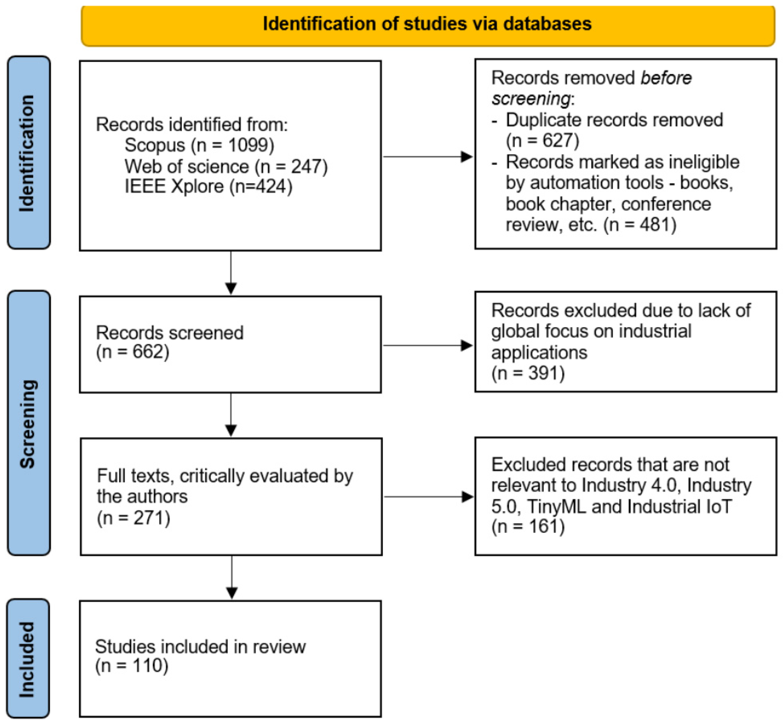 | Technological focus | TinyML, Edge AI, Embedded ML, Industry 5.0 | Excludes cloud-centric ML approaches |