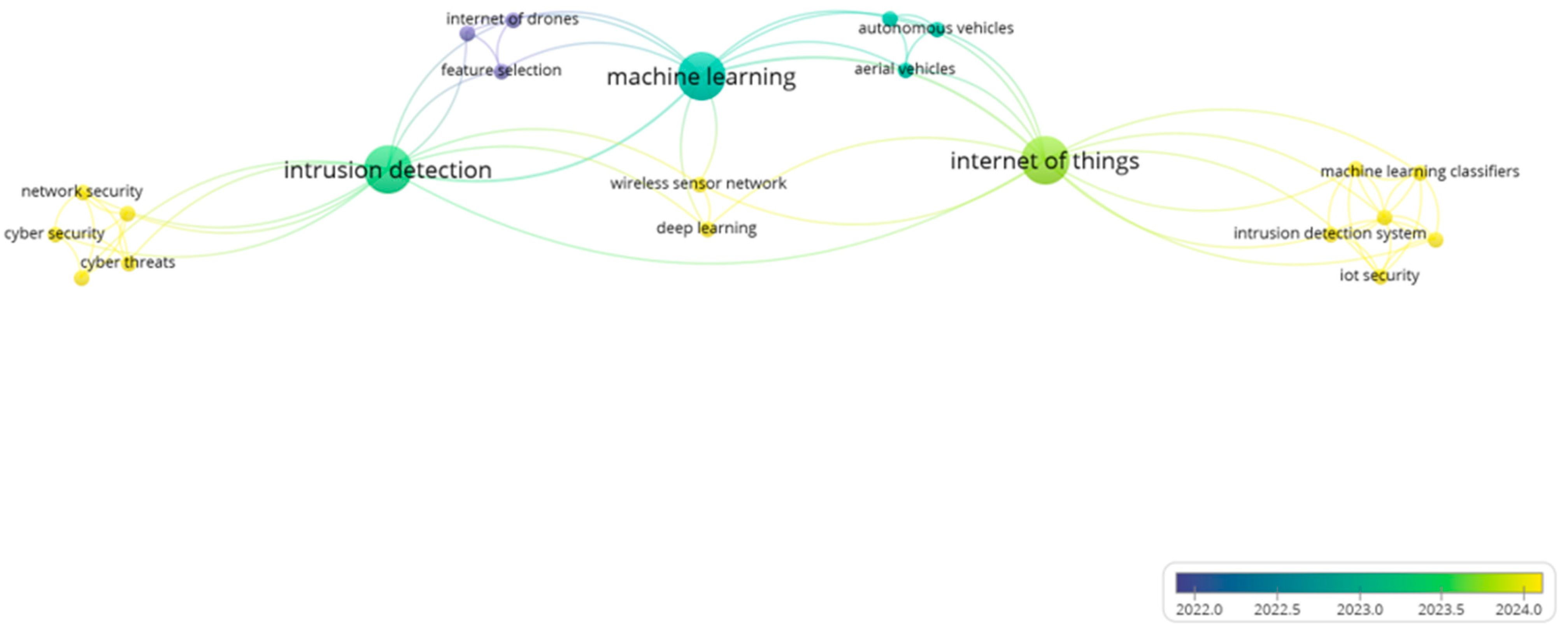 Figure 2, all selected studies were conducted in 2022 or later. Over the past year, topics related to security within the Internet of Drones (IoD) have gained significant traction. This trend underscores the importance and novelty of this area of research.